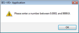 The scaling limits are set at 0.0001 to 9999.9; any values entered out with this range will give the following warning: