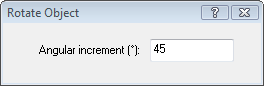 Use this command to rotate the selected objects in any 2D view. The "Rotate Object" dialogue box will appear. Enter the angular increments by which you wish to rotate the selected objects.