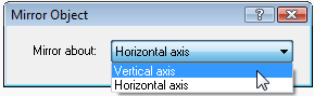 Use this command to create a mirror copy of the selected objects in any 2D view. The "Mirror Object" dialogue box will appear, in which you select the mirror axis – "Horizontal axis" or "Vertical axis".