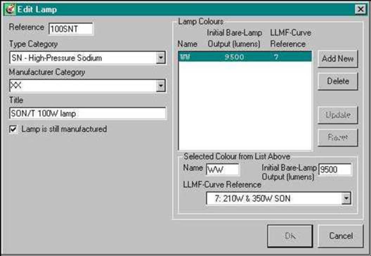 The lamp reference may be up to 6 characters in length and should be a unique reference. If this reference is a repeat of one already existing in the system database, then the user-defined one will be picked up in preference to the system one.