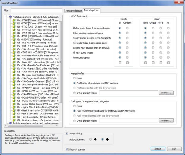It supersedes previous import-only facilities which were limited to ASHRAE 90.1 PRM baseline systems and variants thereof (“Prototype systems”), sharing a single common set of plant equipment and profiles.
