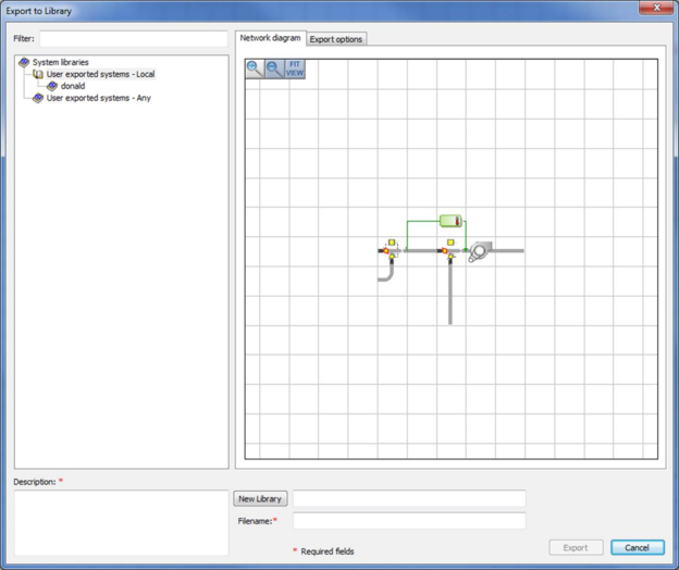 The Library facility has been designed to give the user complete control over import/export operations, covering any element(s) of an ApacheHVAC file (network components, plant components, profiles…).