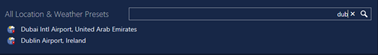 The group will provide a list of all available presets under All Location & Weather Presets – this list can be filtered using a text search in the field at the right. For example, typing “dub” into the field displays only the presets that contain the string “dub” in their name: