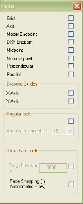 Locks allow the user to snap the drawing tool to various items in the model view window such as