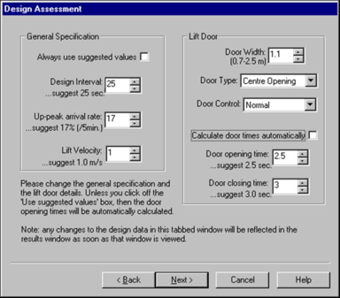 · The ‘design’ lift velocity is estimated in relation to building height.