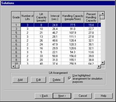 Edit the lift simulation data. Lisi displays the ‘editing lift simulation data’ dialogue box.