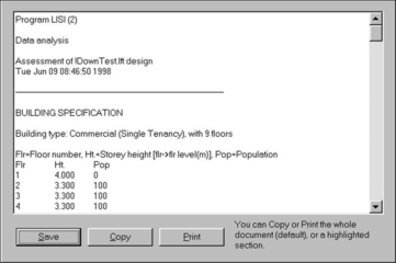 Simulation and design results are listed in a text box, enabling the user to copy, save or print the results.