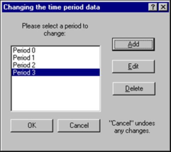 Edit the simulation periods. Lisi displays the ‘Changing the time period data’ dialogue box.