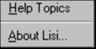 Use the Context Help command to obtain help on some portion of Lisi. When you choose the Toolbar's Context Help button, the mouse pointer will change to an arrow and question mark. Then click somewhere in the Lisi window, such as another Toolbar button. The Help topic will be shown for the item you clicked.