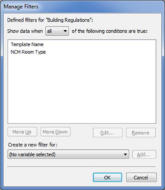 One of the more powerful filtering features in the Tabular BTM is the ability to filter on columns that aren’t actually displayed in the current tab. In order to do this, you use the Manage Filters window – this lists all the filters that are defined for the tab, allowing you to create new filters, edit and/or remove existing filters and control how the overall filtering is applied (i.e. whether a template must pass all defined filters, can pass any filter or must pass none of the filters).