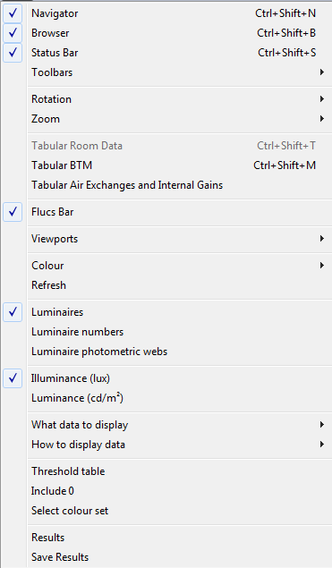 This is available when illuminance (rather than luminance) is being displayed. It displays the Daylight Threshold dialogue box, which allows you to set a threshold contour for daylight factor above (or below) which the area will be filled and calculated.
