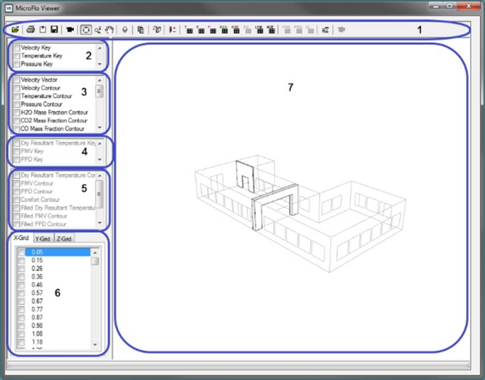 1. MicroFlo Toolbar: This contains the buttons for basic functionality of the MicroFlo viewer.