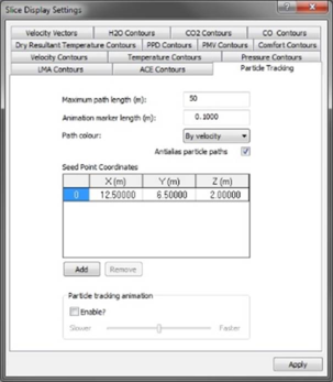 Particle tracking allows the user to visualise the path a particle would take beginning from a certain initial position. This initial position is called as a seed point. The initial settings for particle tracking are available in the ‘Particle Tracking’ tab of the ‘Display Settings’.