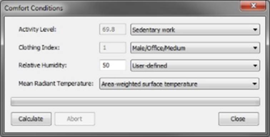 12. Thermal Comfort: Opens the dialogue for the thermal comfort parameters