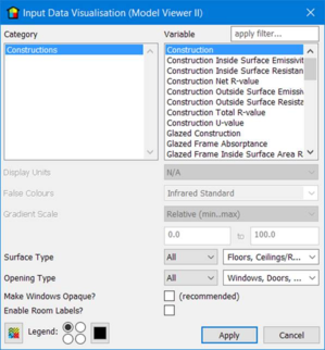 The U-value as calculated by the user selected method of all opaque constructions in use.