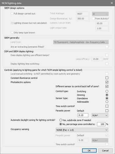 Controls (applying to lighting gains for which ‘NCM simple lighting control’ is ticked)