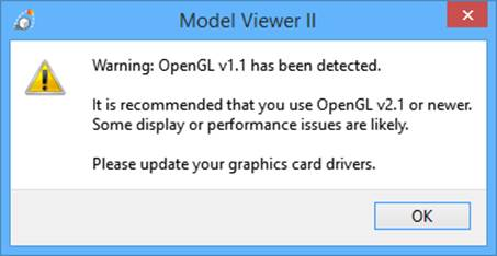 The viewer supports a wide range of OpenGL versions, however for best performance, a dedicated OpenGL v2.1+ compliant graphics card is recommended. If you do not have the recommended version (or newer) you will see the warning above (once per VE session). As mentioned it is advisable that you update your graphics card drivers to support OpenGL v2.1.