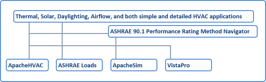 ApacheHVAC supports the detailed definition, configuration, control, and modeling of HVAC systems. It interacts ASHRAE Loads for system sizing and, via Apache Thermal during simulation, with other thermal applications, such as MacroFlo. The simulation program itself is run from within Apache Thermal.