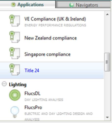 The Title 24 module can be selected from within the applications navigator on the left hand side of the Virtual Environment, in the Compliance and Settings section.