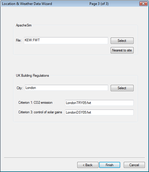 If UK Building Regulations weather files are present in your Shared Content, these can be selected here, via the City list. These are a requirement for UK compliance simulations.