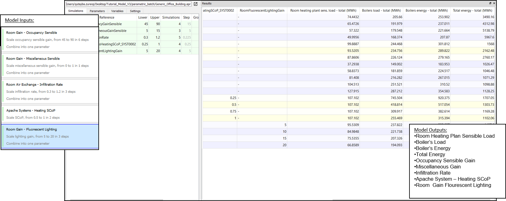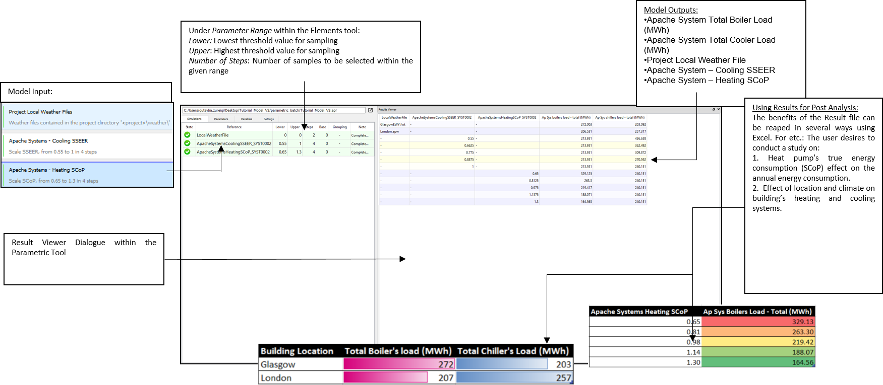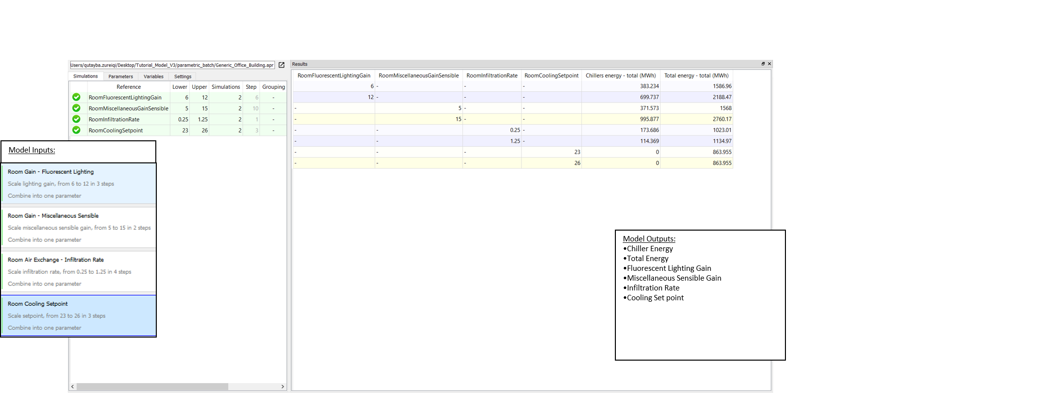 The process of utilising the templates involves first the use of Elements to create the parameters (model inputs) and variables (model outputs) that must be imported into Parametric for the sensitivity study. The templates can be utilised by adhering to the following steps.