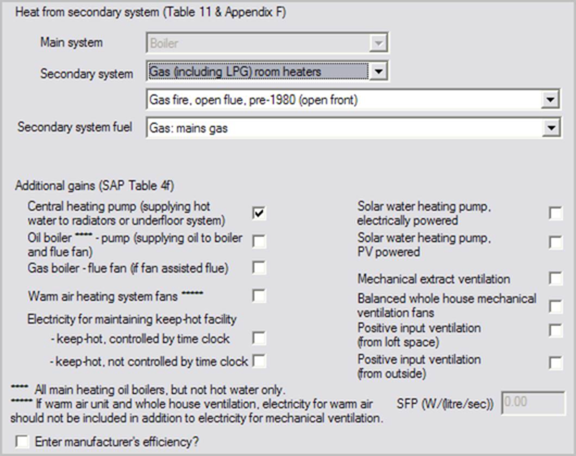 Indicates whether the system efficiency qualifies as a SEDBUK value. If you have ticked the box ‘Enter manufacturer’s efficiency?’ you should also indicate whether the entered efficiency is a SEDBUK value, which it must be if the Elemental Method is to be applied.