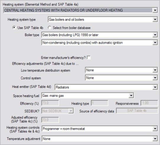The type of system providing space-heating in the dwelling. Use Table 4a, SEDBUK or manufacturers data to derive the heating system efficiency.