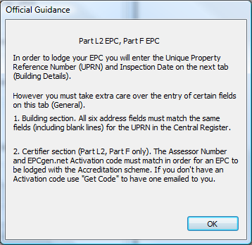 This section has additional EPC data – the first two (Date, UPRN) *must* be filled in correctly, because the unique Certificate number will be generated from them.