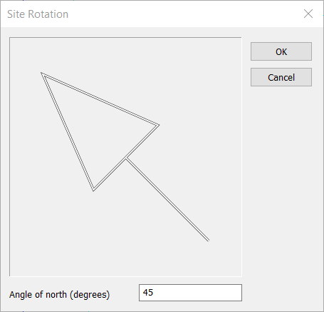 This option allows the orientation of the building to be set. The arrow points in the direction of north and adjusts when a value is entered on the input line (default position = pointing straight up).