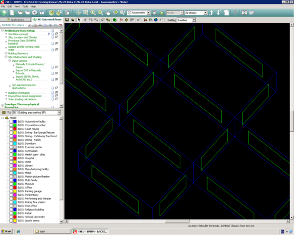Once the location is selected the climate file, which provides the input data for the hourly energy (8,760 hours) is determined. The VE actually runs the energy analysis on 6-minute time steps (as a default) versus hourly, so that the influence of thermal mass can be accounted for within the design.