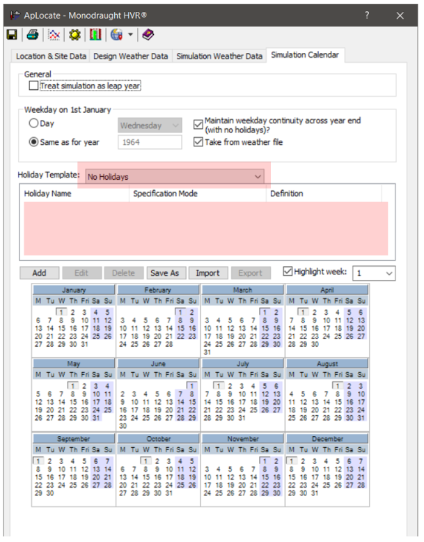 Holidays will now picked-up in the simulation and will use the assigned daily profile (by default always off).