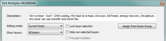· Non-principal multiplexes will be highlighted in blue, similar to non-principal rooms. For a legacy system having more than one multiplex within the system frame, the multiplex with the greatest number of layers will automatically be set as the principal multiplex when the system is first loaded, and thus upgraded.