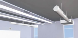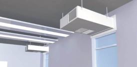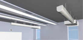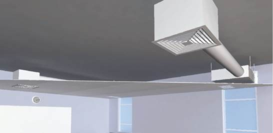 The units are designed so that they can be exposed or enclosed in a bulkhead or ceiling void. The slimline nature of the units was part of the design which was undertaken in collaboration with Nicholas Hare Architects. When the units are exposed in the room or mounted in a bulkhead a grille is usually provided to direct air towards the ceiling and back of the room. The grille arrangement complies with the PSBP FOS. Exposed NVHR units can also be supplied with a fabric duct or solid duct.