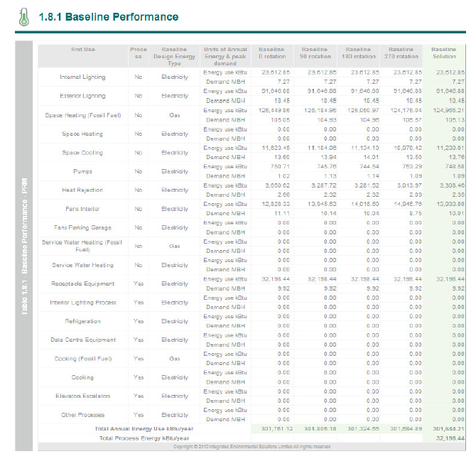 Table 1.8.1, the baseline energy table, is presented.