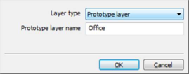 Any layer can be designated as a prototype layer. If it was created as a child of an existing prototype layer, the association with the source layer will be decoupled when its type is changed from child to prototype. When designated as a prototype layer, a name for the prototype (e.g., “Conference room”) will be required.