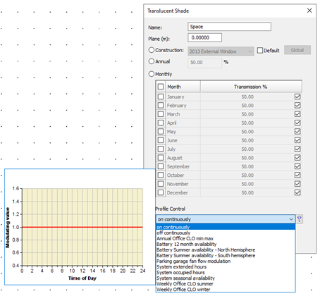 Profile Control (i.e. Hourly): The transmission value that vary on an hour by hour basis based on a selected Modulating profile. The angular dependence in this case is always constant