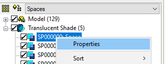 Users can change the translucent shade properties by right-click > properties selection of translucent shades via the browser tree. Another way is to right-click the translucent shade within the model viewer and select Assign/Edit > Constructions.