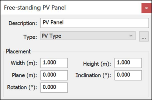 Set the placement parameters and dimensions using the PV Types editing tool – PV panels of all kinds will be assigned PV Types that specify their photovoltaic and metering attributes.