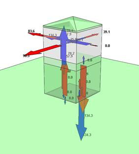 - The screenshot below shows each opening with two directional arrows drawn at the opening plane to show the sum of inward and outward airflow over the current timestep.