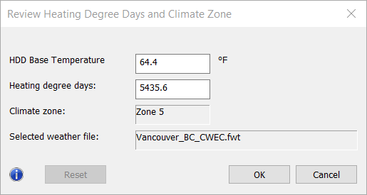 The HDD is calculated based on the daily mean external temperature from the simulation weather file that has been selected in the project and may be manually overridden from this dialog