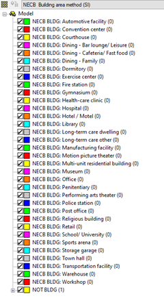 When the prototype data is imported into the working model, it contains a series of thermal room groups based on NECB 2017 ‘Building Area’ & ‘Space by Space’ methods.