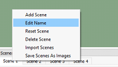 To edit the name of a scene, either right click the scene>>Edit Name or you can double click the scene you wish to rename, once you have entered the name press enter key to save