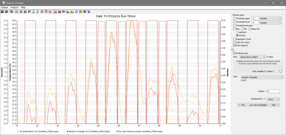 It is also useful to set detailed surface output ON for selected rooms so that the simulation results can be checked in VistaPro. For example the scripted profiles utilised in the Section 3 opening types (3.28.3) will show operation like this: