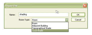 The dialog allows the room type to be changed from “Room” to a suitable type of shading type.