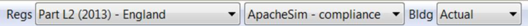 These toolbar settings select the regulatory framework for the analysis, and (where relevant) the version of the building displayed.