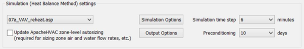 Specify the time step to be used in the simulation. A time step of 10 minutes is suitable for most building simulations. For ASHRAE Loads calculations the reporting interval is fixed at 60 minutes.