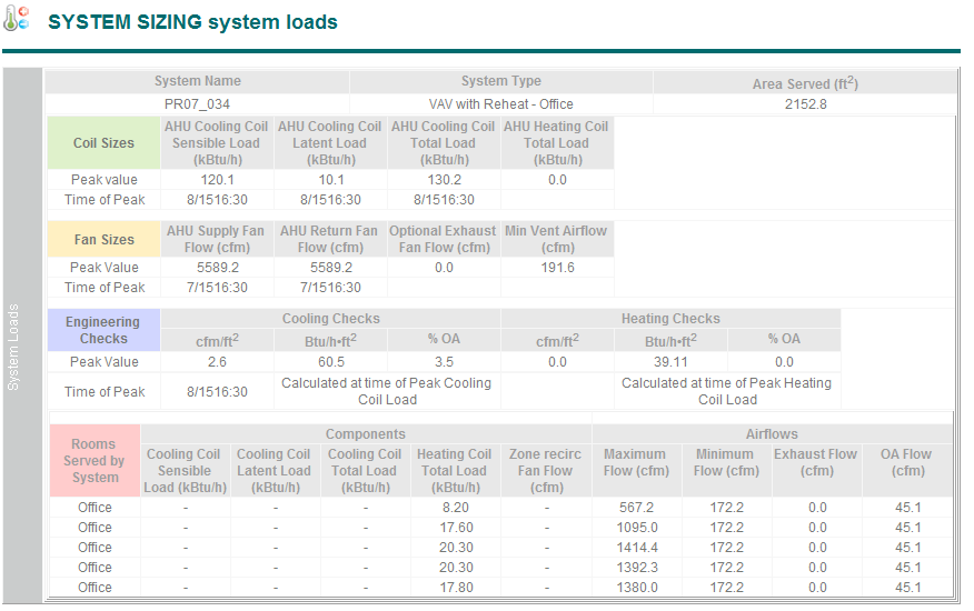 system type, the floor area served and peak load occurrence.