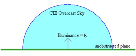 E = illuminance on unobstructed plane