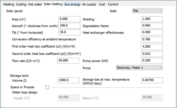 This tab allows you to describe a solar water heating system feeding into the DHW system.