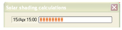 Clicking this Navigator command automatically opens the SunCast module and performs solar shading calculations. Solar shading calculations are performed hour by hour for the 15th day of each month of the year. These results will be fed into the Apache Dynamic Thermal Simulation as a simulation link.